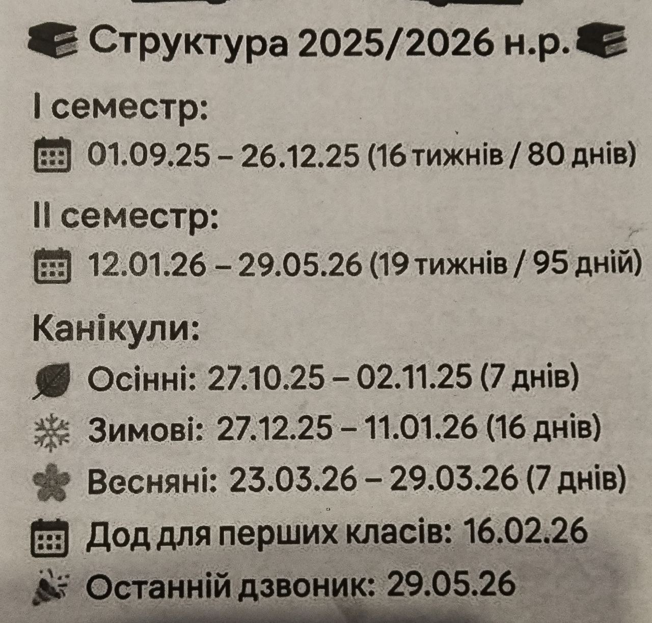 Розклад дзвінків 2025/2026 н.р. Розклад дзвінків 1-й клас Розклад дзвінків 2-4 класи Розклад дзвінків 5-11 класи
